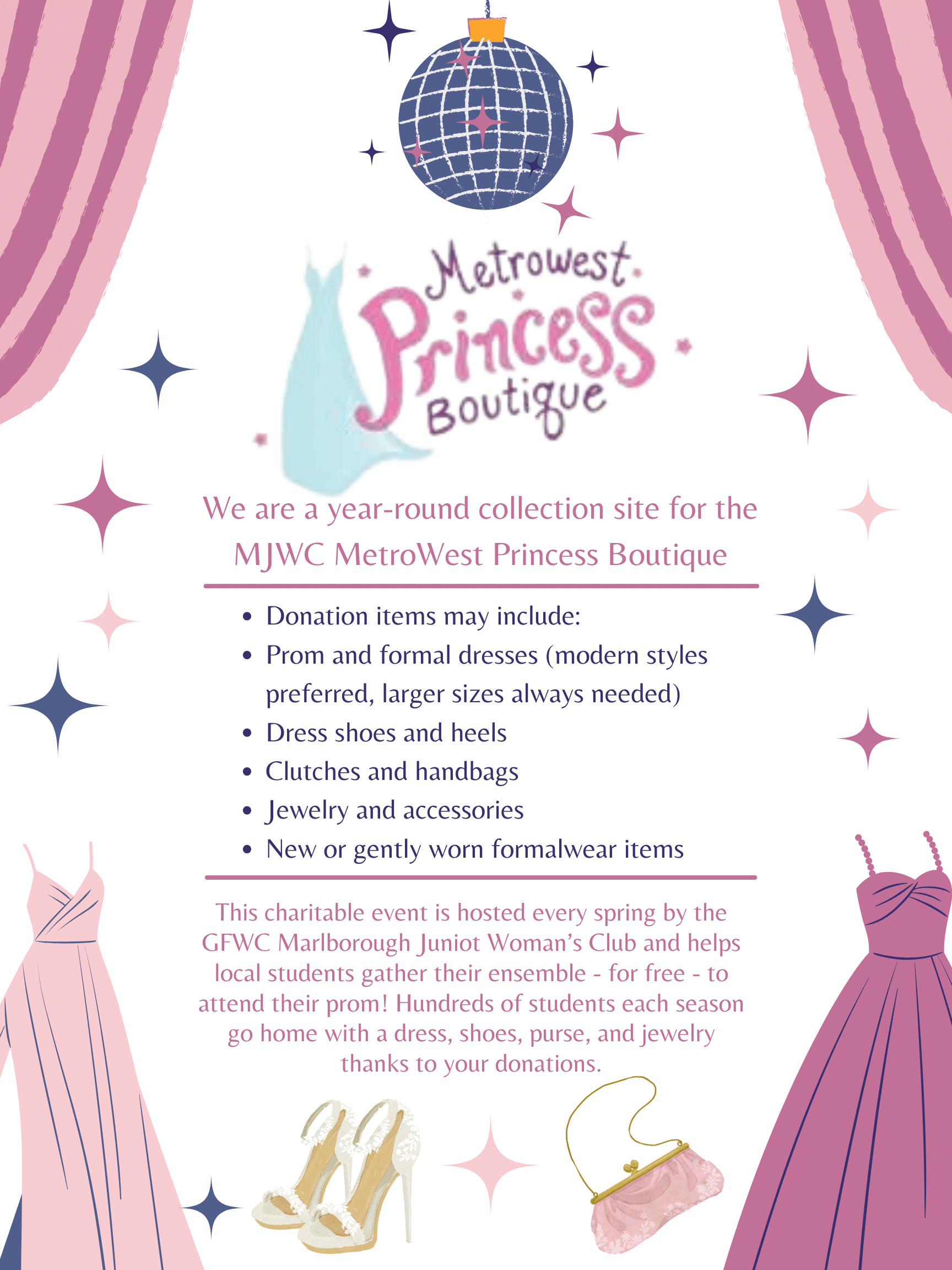 We are proud to serve as a year-round collection site for the MetroWest Princess Boutique, a meaningful initiative that helps local students attend prom with confidence—at no cost to them.